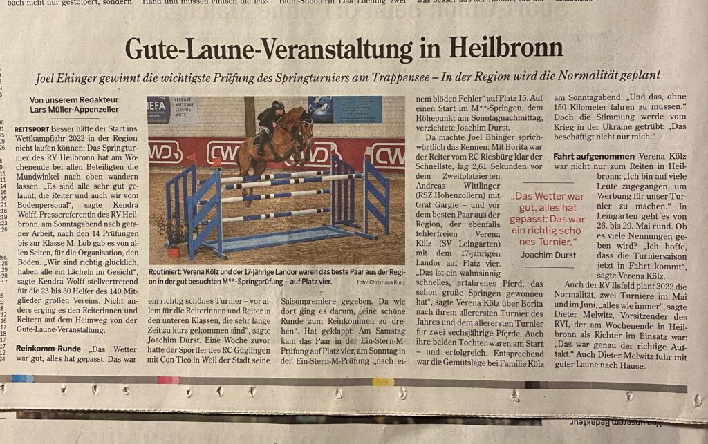 Gute-Laune-Veranstaltung in Heilbronn Veröffentlicht am März 28, 2022März 28, 2022 von Admin Wir danken herzlich allen Helfern, Sponsoren, Reitern & Gästen. Artikel HSt vom 28.3.2022