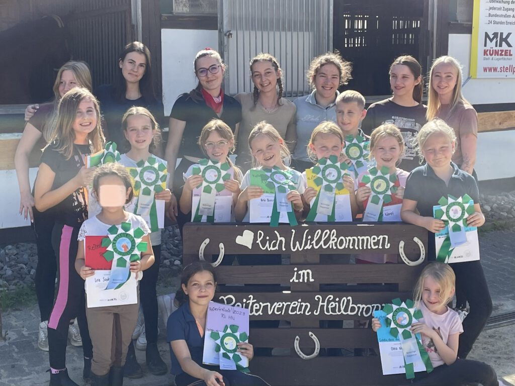 12 Kinder besuchten die erste von drei angebotenen Reiterferien. Die Crew um Tessa Pfeifer und Alexa Egerer arbeitete ein Programm für die Kinder aus, die keine Wünsche offen ließ. Reiten, Pferdepflege und spielerisches Lernen, was im Umgang und bei der Pflege von Pferden wichtig ist, waren ebenso Programm, wie gemeinsames Spielen & Basteln. Höhepunkt zum Abschluss war eine Schnitzeljagd durch den Heilbronner Stadtwald. Am Ende der 5 actionreichen Tage sah man zum Abschied in viele zufriedene Gesichter, sowohl bei den Kindern, als auch bei den Eltern. Wir freuen uns auf die nächsten Freizeiten.