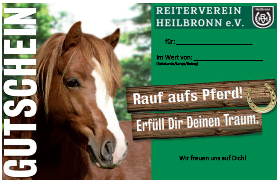 Wir bieten wir euch die Möglichkeit, Reitstunden oder die Teilnahme an Ferienreitkursen als Gutschein zu verschenken.